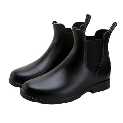 Custom Adult Unisex Black Leather Lightweight PVC Rain Boots Waterproof Midi Shoes With Round Toe for Work Autumn Winter