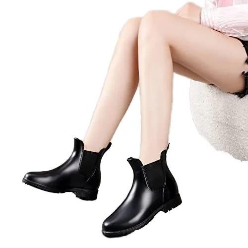 Adult Unisex Black Leather Lightweight PVC Rain Boots