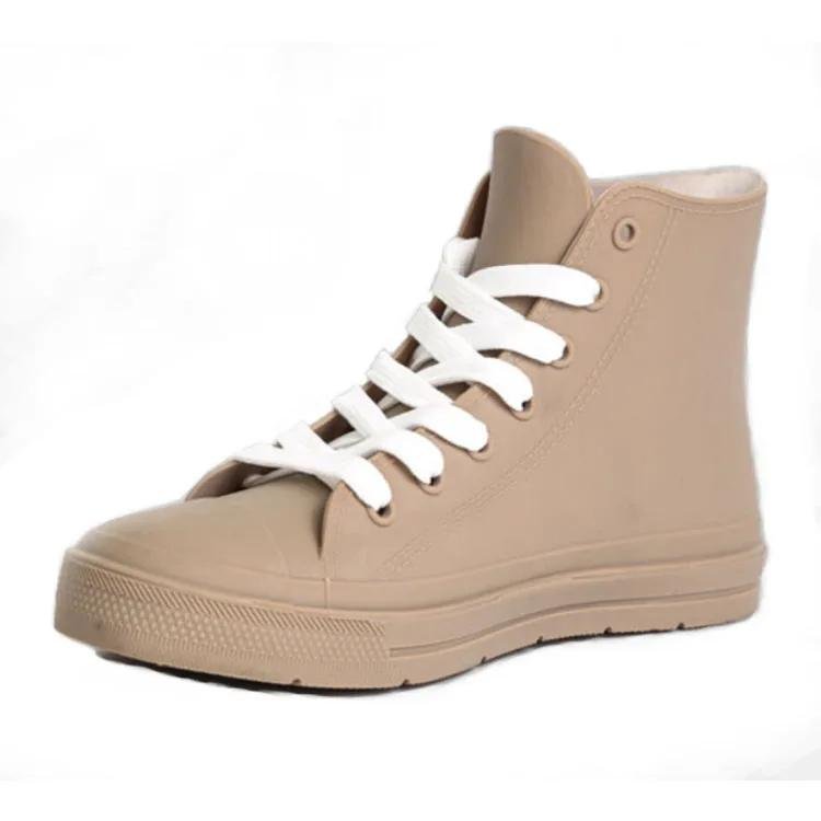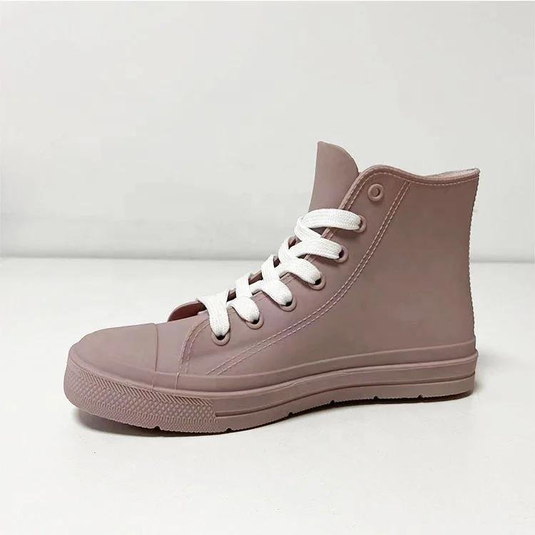 Ladies Lace up Rain Sneakers Adult Waterproof Lightweight TPE Women Garden Shoes Rain Boots